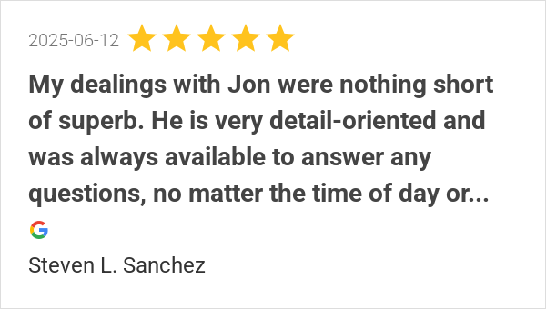 20+ Year Realtor here. Jon is extremely personable, customer...
