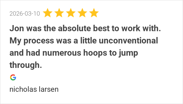 Jon was the absolute best to work with. My process was a lit...