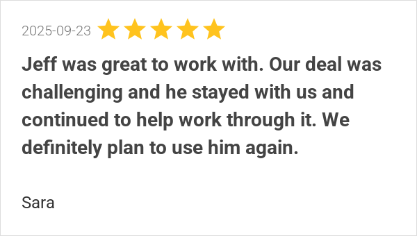 Jeff was great to work with. Our deal was challenging and he...