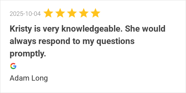 Kristy is very knowledgeable. She would always respond to my...