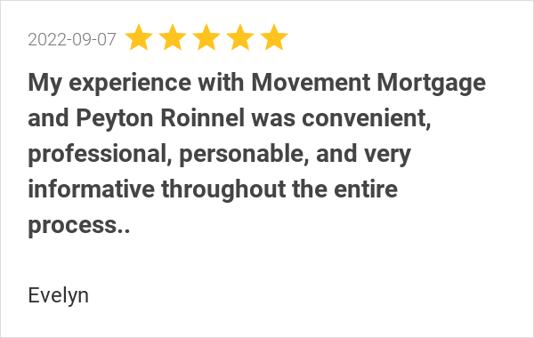 My experience with Movement Mortgage and Peyton Roinnel was ...