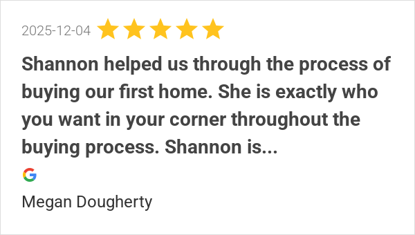 Choosing Shannon as our lender, based on our realtor’s recom...
