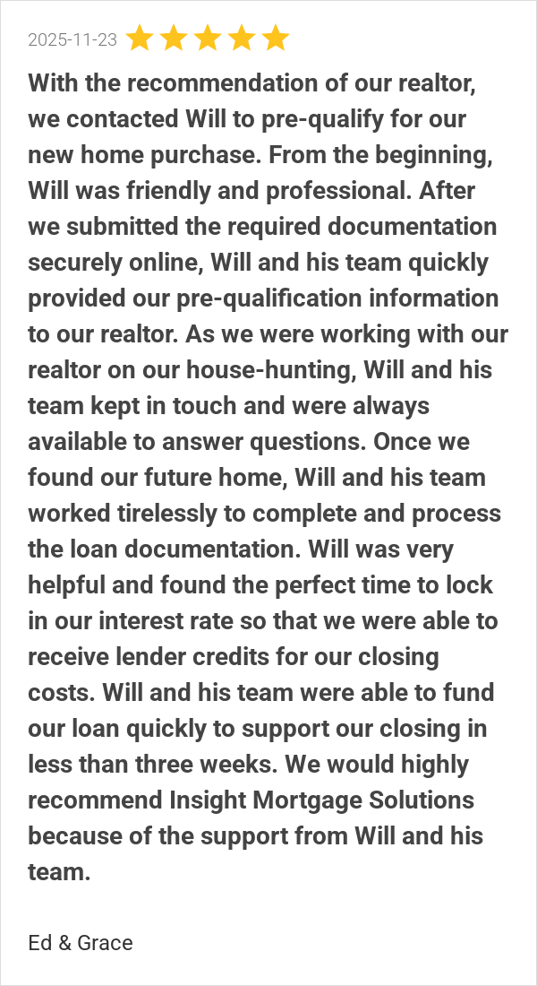 Will at Insight Mortgage Solutions was absolutely excellent!...